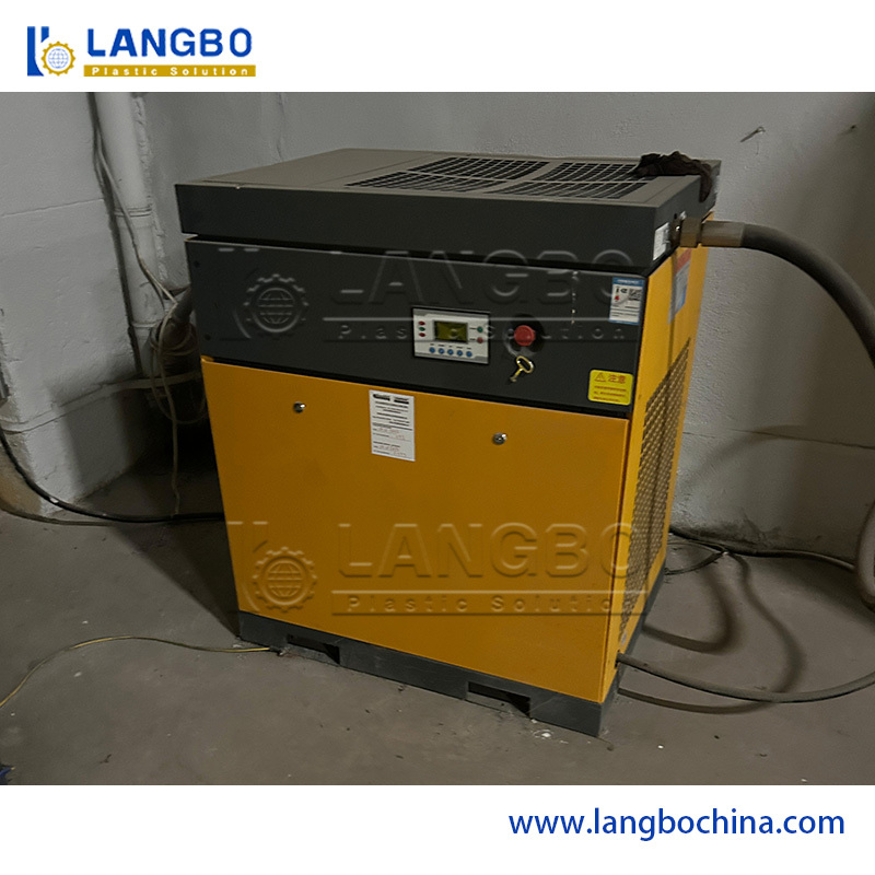 The air compressor provides stable and continuous compressed air for industrial applications. It is designed to support plastic extrusion lines and auxiliary equipment, ensuring reliable air supply for long-term operation with consistent pressure and efficiency.