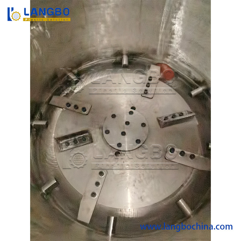 High-speed friction between materials and contact with chamber walls and blades generates significant thermal energy, rapidly heating materials to a semi-plasticized state where they begin to adhere together. The addition of cooling water causes rapid evaporation, carrying away surface heat and preventing material caking while enabling the formation of irregular plastic pellets through continued cutting action.